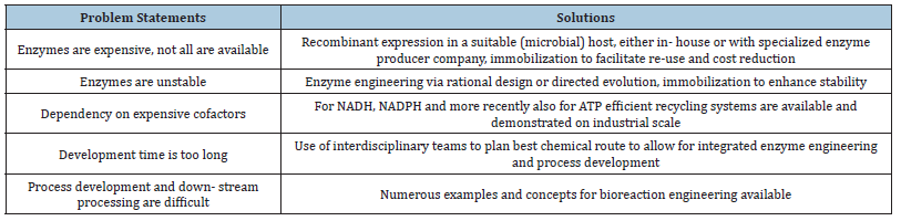 Table 3:Challenges in biocatalysis and solutions [73].