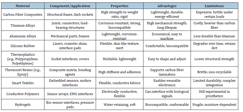 Table 1:Materials used in smart prosthetic fabrication [3,9,11,12].