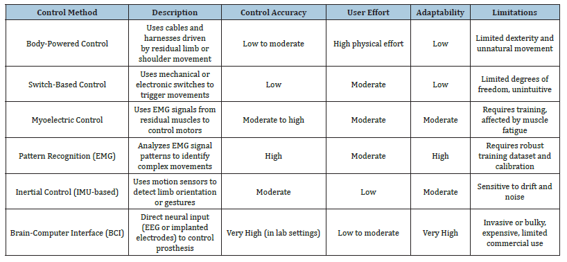 Table 5:Functional assessment of smart prosthetics [4,5,10,14,15].