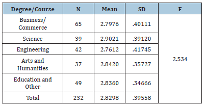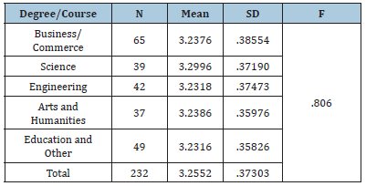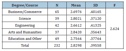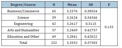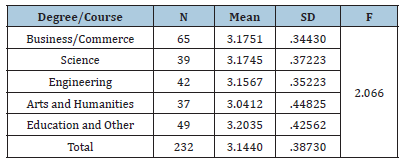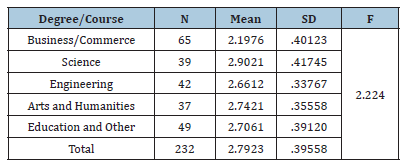Table 5:ANOVA results for awareness and perceptions of SDGs for degree/course (Theme 1- Awareness on SDGs).