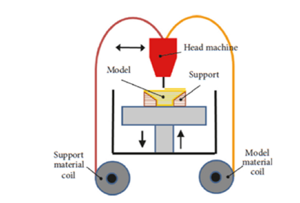 There are several different types of 3D printing techniques, each with their own advantages and limitations. Some of the most commonly used techniques in the fashion industry are: Fused Deposition Modeling (FDM), Selective Laser Sintering (SLS) and Stereolithography (SLA). FDM (Fused Deposition Modeling) the technology is used in approximately 70% of 3D printing cases world wide. The FDM method involves melting a thermoplastic material using a temperature-controlled nozzle. The molten material is automatically pushed into the print head and exits in a thin layer onto the print table to form the model. A schematic diagram of the FDM 3D printer is shown in Figure 2 [5].