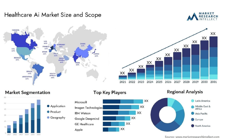 Artificial Intelligence (AI) is making significant strides in various clinical applications, revolutionizing healthcare practices. In the field of cardiovascular medicine, AI algorithms are being developed to aid in diagnosing and risk stratifying patients with conditions such as coronary artery disease. Wearable devices and internet-based technologies are also being used to monitor cardiac data, enabling early detection of cardiac events outside of the hospital. AI has shown promise in dermatology for diagnosing skin cancer and classifying various skin diseases. It has achieved high accuracy levels in skin cancer detection, surpassing human dermatologists in some cases. Gastroenterology is another area where AI can enhance endoscopic procedures, allowing for faster disease identification and visualization of blind spots. Infectious diseases are being tackled with the help of AI, with applications ranging from predicting treatment outcomes and identifying antimicrobial resistance to diagnosing diseases such as malaria, meningitis, and tuberculosis. Musculoskeletal applications of AI include identifying causes of knee pain, particularly in underserved populations, to improve diagnosis and management. Oncology has seen significant progress in using AI for cancer diagnosis, risk stratification, molecular characterization of tumors, and drug discovery. AI algorithms have shown promise in detecting breast cancer and prostate cancer with high accuracy rates. To better understand the significance concerning the matter (Figure 6) representation provides a global view of AI in healthcare insights. Ophthalmology benefits from AI applications for screening eye diseases, with FDA approval granted for the use of AI algorithms in diagnosing diabetic retinopathy.
