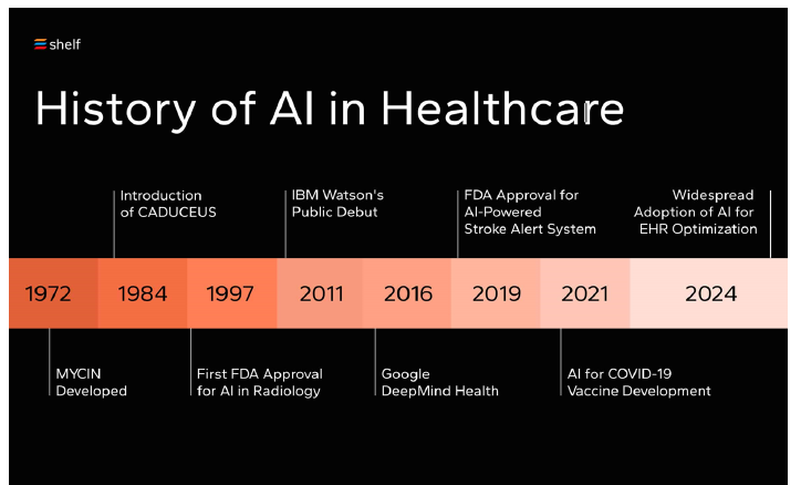 AI algorithms are also used to predict disease risk based on patient records and family history. Drug interactions pose a threat to patients taking multiple medications, and AI is being utilized to identify potential drug-drug interactions by analysing medical literature and user-generated content such as adverse event reports. To provide an overall visualization on the aspect of the matter concerning the medical domain (Figure 7) provides the history of AI in healthcare. While AI holds great potential in these clinical applications, challenges remain. Validation of AI models against human performance is essential, as is addressing issues of bias, interpretability, and privacy. Further research and clinical trials are needed to assess the true clinical utility of AI in various healthcare settings. Overall, AI has the potential to revolutionize clinical practices, improve patient outcomes, and enhance the efficiency and accuracy of healthcare delivery. The healthcare industry is witnessing the implementation of Artificial Intelligence (AI) through the collaboration and mergers of large health companies, allowing for greater accessibility to health data. These partnerships provide a foundation for the development and integration of AI algorithms. Many companies are exploring the incorporation of big data in healthcare, focusing on data assessment, storage, management, and analysis technologies. Several prominent companies have contributed to the advancement of AI algorithms in healthcare. IBM’s Watson Oncology is being developed in partnership with leading cancer centres to assist in personalized cancer treatment.