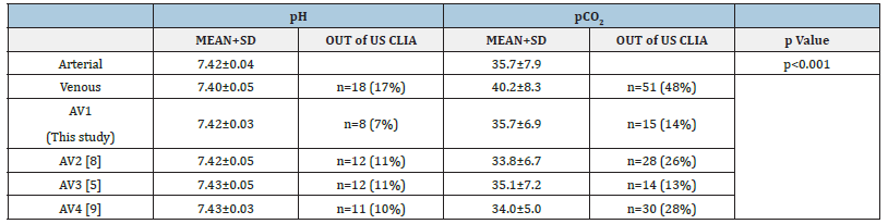 mean venous pH was 7.40±0.05 (range: 7.25-7.51). The difference