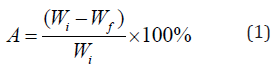 Where A is moisture, Wi is the initial weight of the samples (before drying) and Wf is the weight of the samples post dying.