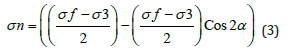Laboratory results of the stresses at failure reflect the combined effect of the frictional resistance, the tensile strength and the cohesion, equation 5.
