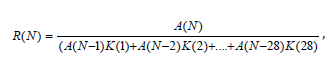 A(N) = R 0 (A(N − 1)K(1) + A(N − 2)K(2) + ....)