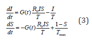 whereR ̄0 is the “base” value of the contact number estimated above S(t) is the proportion of the susceptible part of the population E(t) is the reduction in transmission activity thanks to effectiveness of the anti - epidemic measures and G(t) is seasonal fluctuations in the activity of the transmission mechanism, that is, a positive function with a period of one year and an average of 1.