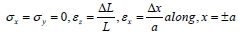 In equation (3), A is the RVE cross sectional area. The value of σave is evaluated by averaging stress in the z-direction on the plane z = L/2 in the FEA model. Using the first relation in equation (1), and the relation between stress and strain, along x = ±a, we have
