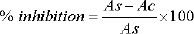 Where Ac is the absorbance of the control and As is the absorbance of the sample.