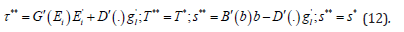 The tax on soil emissions can be solved by setting the private indirect profits equal to indirect social returns and solving for the tax, which gives T* = G′(E)as This guarantees that all externalities are internalized and the private choice of cultivation technology coincides with the social choice. Comparing next the social returns to green set aside with the private one in a similar manner shows that they are identical by choosing the net subsidy rate as