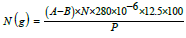 B: Quantity of sulfuric acid required for the titration of the control (ml).