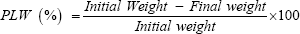 Physiological loss in weight (PLW) of bhamora fruit was calculated after every 5th day for 20 days and the results were then expressed in percentage [10] using following formula: