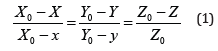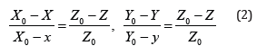 Where Χο, Υο, Ζο are the coordinates of the anode where the perspective center is located. Relations (1) are two equations written as follows: