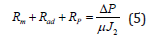 After the membrane pores have been blocked, further deposition of particles on the membrane surface will form a cake layer. The cake layer is a constant layer of retained particles packed at maximum density on the membrane surface [2]. Cake formation creates an additional resistance layer to the permeate flow. The flux decreases as the thickness of the cake layer increases with time. NF processes 100ppm Reactive yellow dye solution run for 120min at different TMPs by performing both the techniques. Since the kinetics of Rad/Rm and Rp/Rm was obtained already, the cake layer resistance can be calculated by: