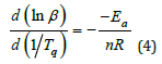 Ea/Rn≥2Tq is usually found to be true so that Eq.3 can be simplified to be Eq. 4.