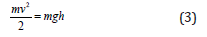where m - mass of the body; g - acceleration of free fall; h - height of lifting the cm on the position of equilibrium; v - velocity of the cm motion.