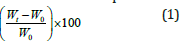 Swelling behavior of nPS: VR blends, rectangular shape (5×1×0.2) cm specimens, were performed by toluene absorption tests as per ASTM D570 procedure. The weights of specimens were measured before immersion and then after immersion in the toluene bath for the duration of 24h. The condition of toluene bath was maintained at a temperature of 25 ºC. The specimens were removed from toluene bath after predetermined interval of time (duration of 24h). The swelling behavior was analyzed from the calculation of % swelling or Swelling index, i.e. toluene absorption by different composition of nPS: VR blends. % Swelling of the nPS: VR blends was calculated by equation (1) in which W0 is the weight of the samples before soaking in toluene and Wt is the weight of the samples after soaking in toluene after 24h.