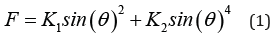 At zero magnetic field, we reach a remnant magnetization of Mr=0.022T which is smaller than remnant magnetization on the easy-axis of magnetization. From the curve M(H) along the hardaxis and the Eq (5), we have specified the constants of anisotropy K1 and K2 of the hexaferrite material. the susceptibility in weak field equal to χ=1.7×10-5 therefore, the constant of anisotropy is K1=3.4×105J/cm3 and thanks to these values, we have found through the Eq (6) that the constant of anisotropy K2 equal to -1.6×105J/ cm3. We point out that these values are in agreement with the experimental results [10].