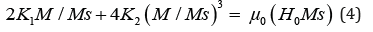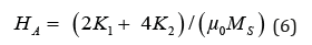 The saturation is triggered (M=Ms) through certain anisotropy fields HA larger than the saturation field and which is given by the equation: