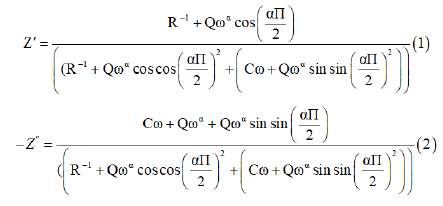 The fitted values obtained by the equivalent circuit are used to simulate the experimental curve of real and imaginary part of impedance spectroscopy based on the fallowing equation: (2) and (3)
