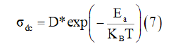 Figure 6b gives the variations of the direct current conductivity as function temperature and show that the conductivity increase with temperature which reveals a typical Arrhenius-type behavior [18].