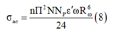 In the present case, the calculated curves of Ln (ζAC) versus 1000/T at some fixed frequencies is given in Figure 8. This suggested a good agreement between the theoretical and the experimental result. It is evident from this figure that 𝜎ac increases linearly with the temperature, implying that the AC conductivity is a thermally activated process. The calculated parameters by the CBH model are listed in Table 3.