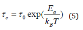 where, is the activation energy for the mode connected to the order/disorder transition, is the Boltzman constant, is the relaxation time at infinite temperature. Eq. (4) can then be written by: