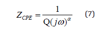 Where, Q indicates the value of the capacitance of the CPE element and α is the degree of deviation with respect to the value of the pure capacitor.
