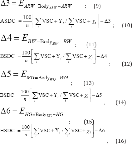 Then fitting equations of the breast model are stretch distance coefficients that are computed as follows: